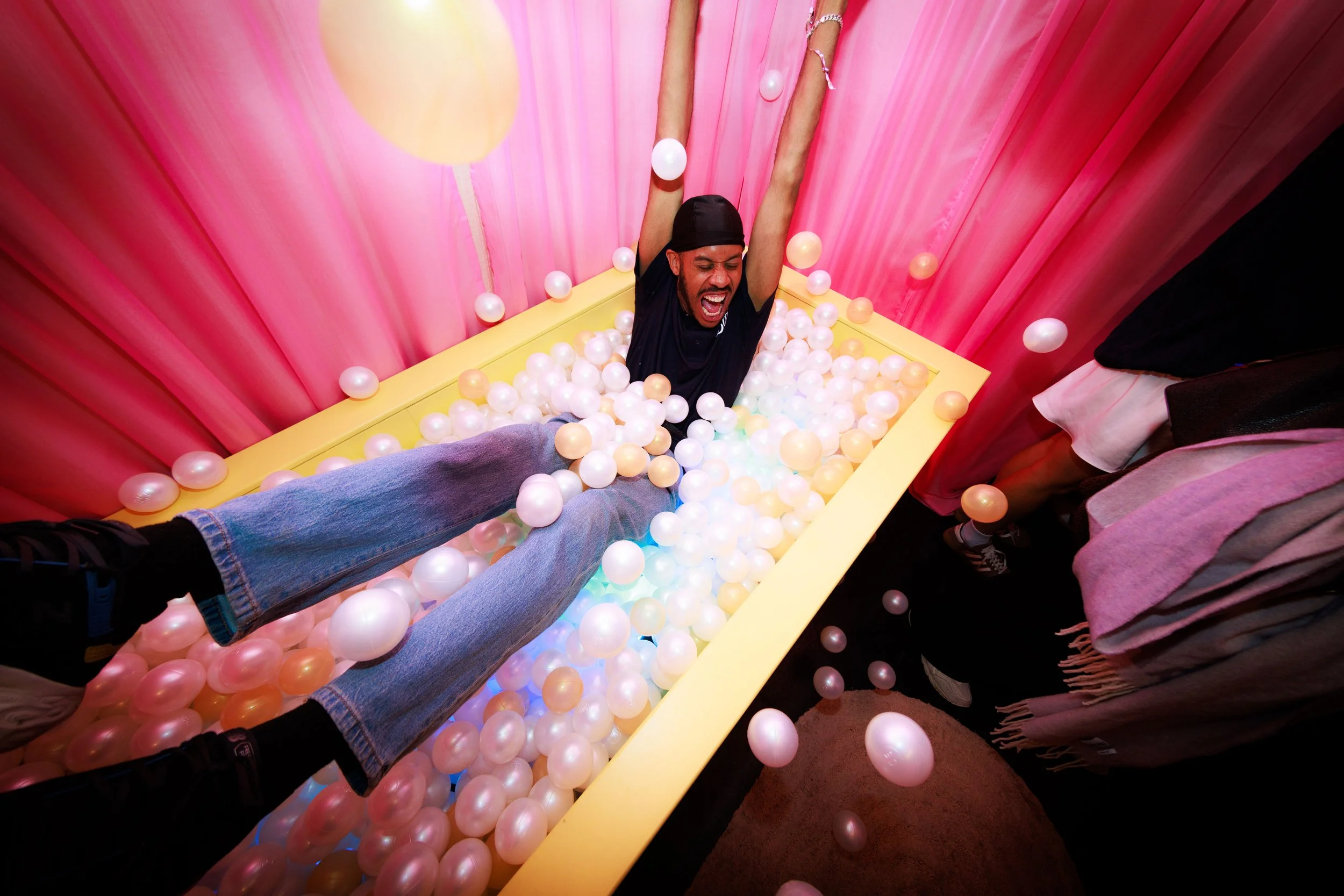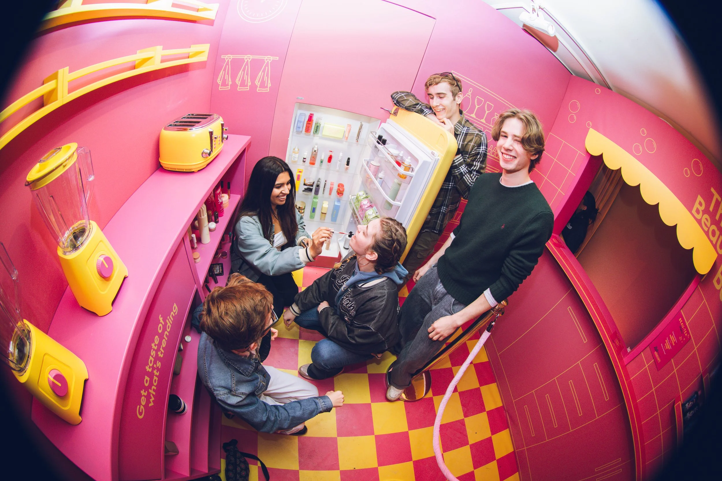 Over one weekend, we transformed 15 Bateman Street in Soho, London into an immersive three-day House Party. Each room offered a new way to explore; beginning in the bathroom with a scent shower and bubble bath lucky dip, before moving to the bedroom for beauty confessions, makeovers, and hairstyling moments. In the kitchen, bubble tea and good conversation flowed; the final touch before heading out.
