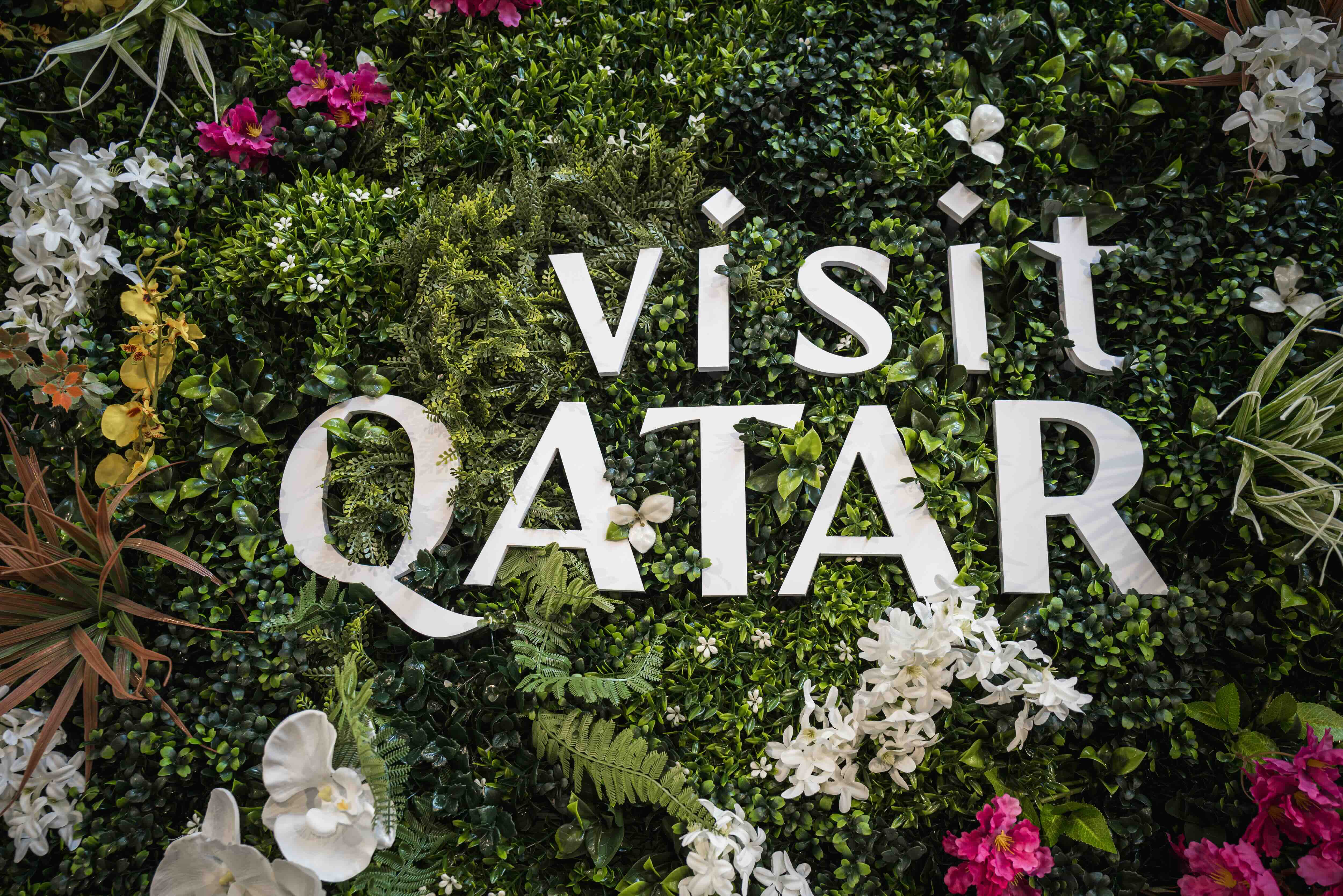 On the ground floor, guests were welcomed by a dedicated hostess before exploring a series of experiences designed to inform and inspire. Highlights included personalised leather luggage-tag embroidery, interactive digital towers showcasing Qatar’s leading destinations, live watercolour artists, and a central atrium framed by a living flower wall photo moment.